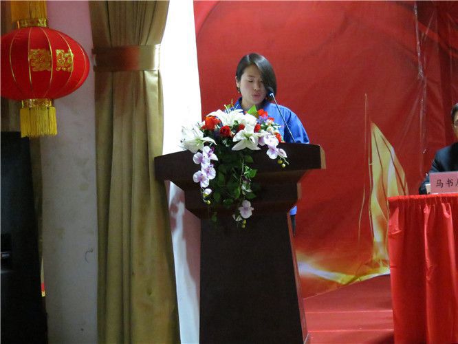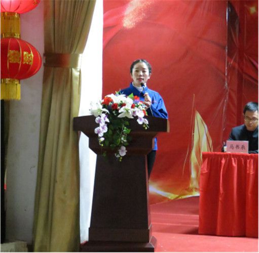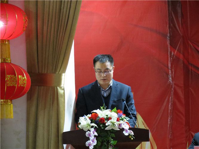 表彰大會上醫用公司董事長楊棉宣讀《華寶集團開展向2017年度勞動模范、先進工作者、先進集團學習的通知》。